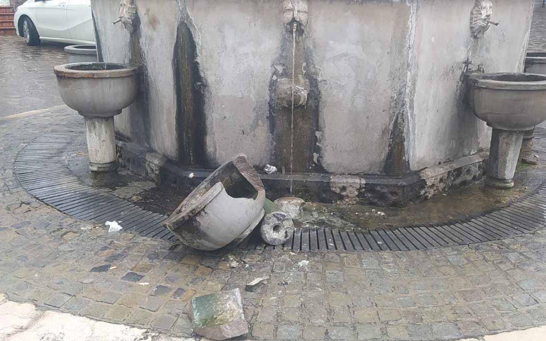 Vandali distruggono una vasca della “Fontana dell’acqua sulfurea”, uno dei monumenti identitari della città di Cassano all’Ionio