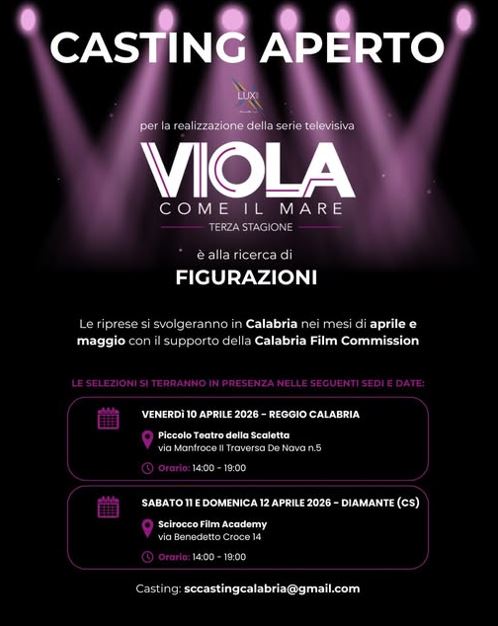 La casa di produzione Lux avvia in Calabria la selezione di figurazioni per la terza stagione della serie televisiva Viola come il mare