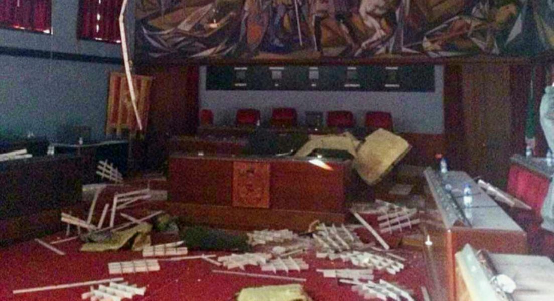 “L’aula dopo l’intervento dei vigili urbani è stata dichiarata inagibile, dopo il cedimento di parte del solaio. Il crollo è avvenuto durante il fine settimana e pertanto nell’aula dell’assemblea non c’era nessuno.”