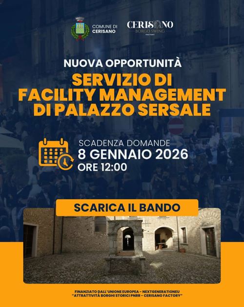 Il Comune di Cerisano ha avviato una manifestazione di interesse finalizzata all’affidamento del servizio di facility management di Palazzo Sersale, uno dei beni di maggiore rilevanza storica e culturale del territorio.