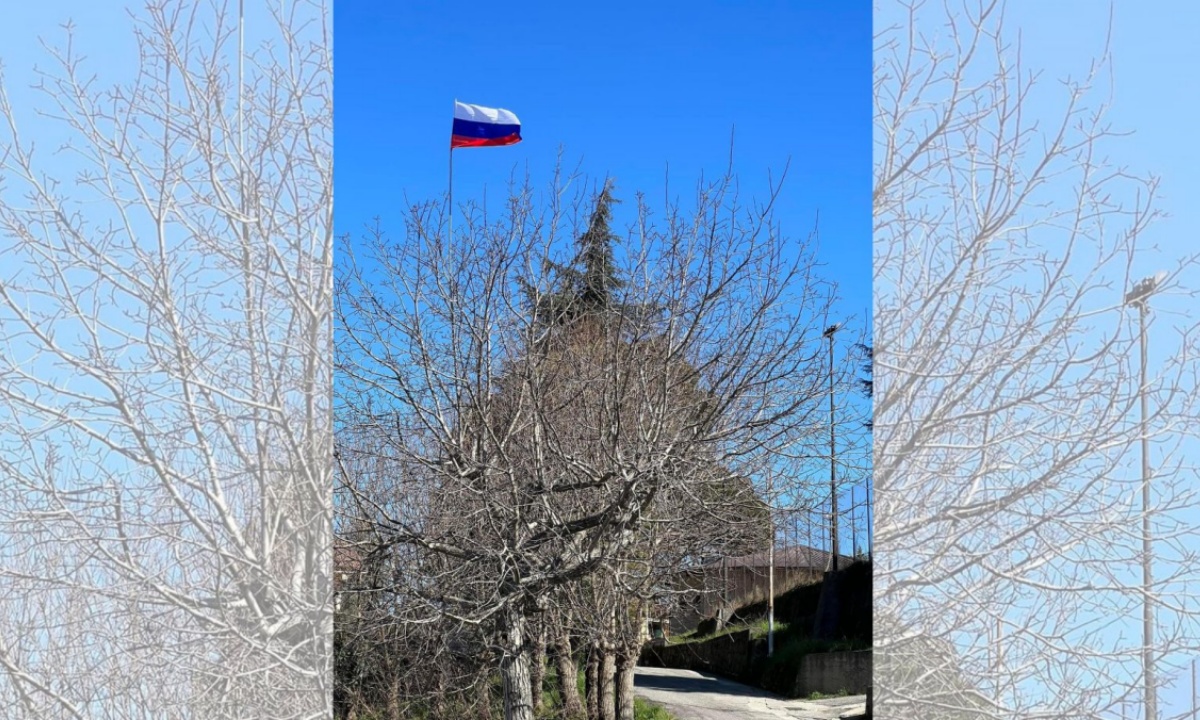 Una bandiera russa è stata issata su un albero vicino alle scuole di Cerisano