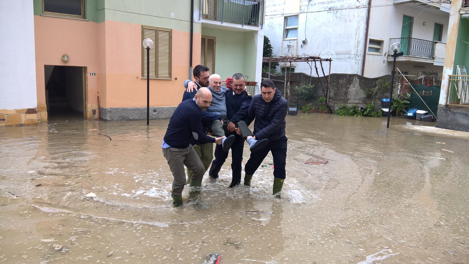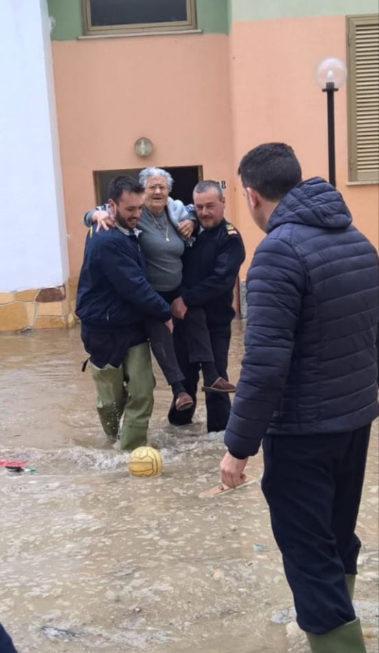 Successivamente il personale della Guardia Costiera assisteva un adulto con difficoltà motorie accompagnandolo, congiuntamente a due cani domestici, al di fuori della propria abitazione, in procinto di allagarsi.