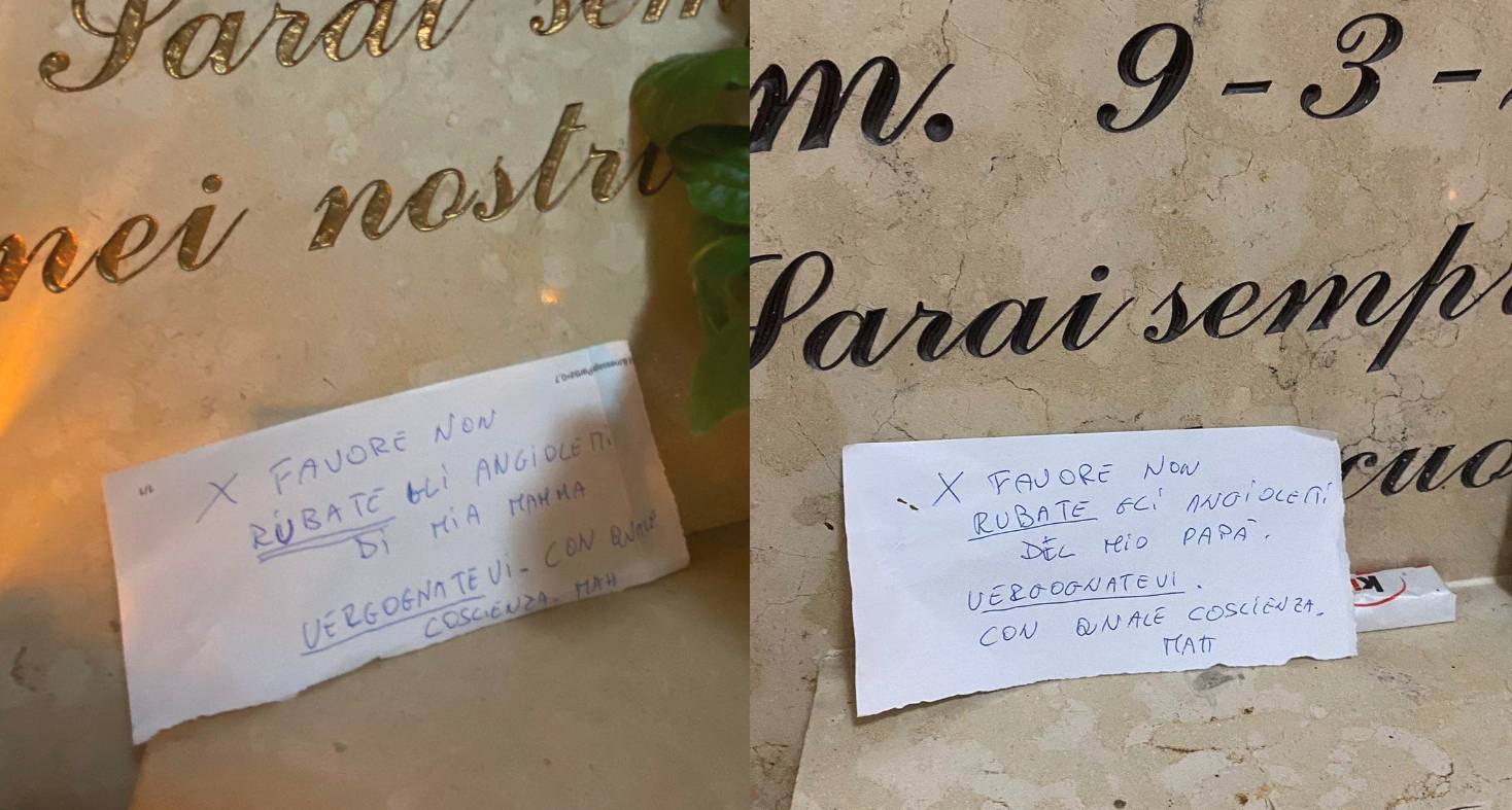Identica situazione sulla lapide dei miei genitori, hanno rubato lo stesso angioletto e il rosario.