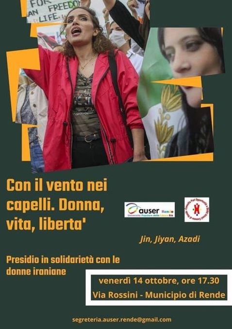 Con la manifestazione, promossa da Auser, Consulta Pari opportunità e diritti umani del Comune di Rende, Centro di Women’s Studies dell’Università della Calabria, Eos Arcigay Cosenza e Arci Cosenza, il comune di Rende: “appoggia pienamente il presidio in solidarietà con le donne iraniane”, che si svolgerà nella piazza antistante al municipio di Rende, venerdi 14 ottobre, dalle h 17,30