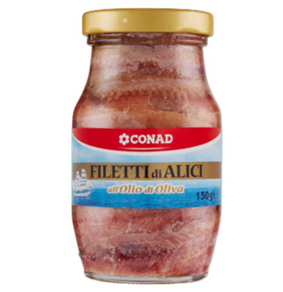 “Si tratta dei Filetti di Alici all’olio di Oliva confezionati dalla ditta Zartotti s.p. a., con sede a Parma, nello stabilimento Poseidon SH. P. K. di Shengjin, in Albania, e venduti a marchio Conad in vasetti di vetro da 150 grammi ciascuno .