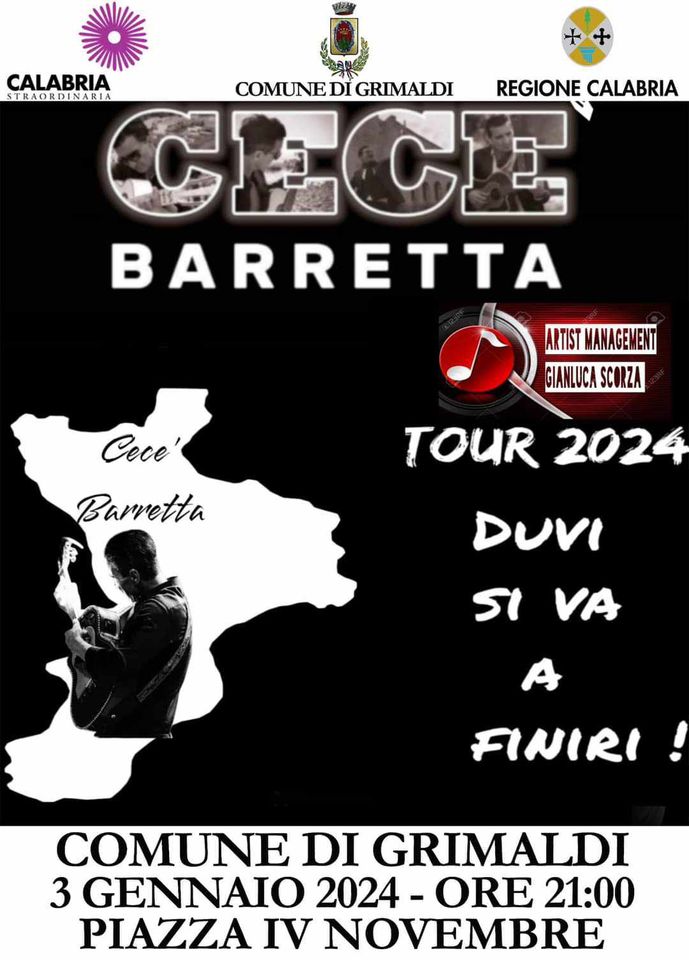 “L’Amministrazione Comunale ha scelto di salutare l’imminente anno 2024 con il concerto di Cece’ Barretta, cantautore che narra della terra calabrese, dei suoi colori e paesaggi, promuovendo gli angoli più belli della nostra Regione.