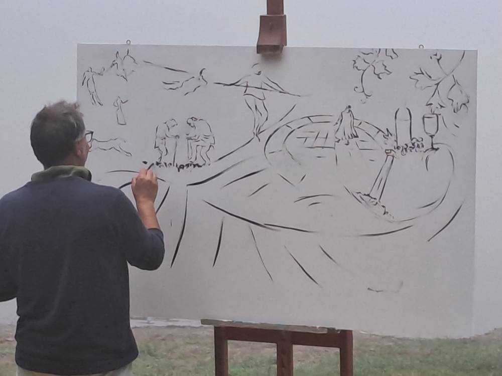 Sulla faggeta che pareva la foresta incantata delle fiabe aleggiavano nebbia e note mentre la tela bianca di De Seta si riempiva di colore. E non solo: perché il pennello è finito pure nel calice di Gaglioppo: così, il vino si è fatto opera d’arte. Un viaggio nello spazio e nel tempo perché Cirò ci ha trascinati pure nel ‘500 quando Luigi Lilio, medico, astronomo e scienziato cirotano, rivoluzionò il modo di misurarlo il tempo cancellando dieci giorni dalla storia dell’umanità.