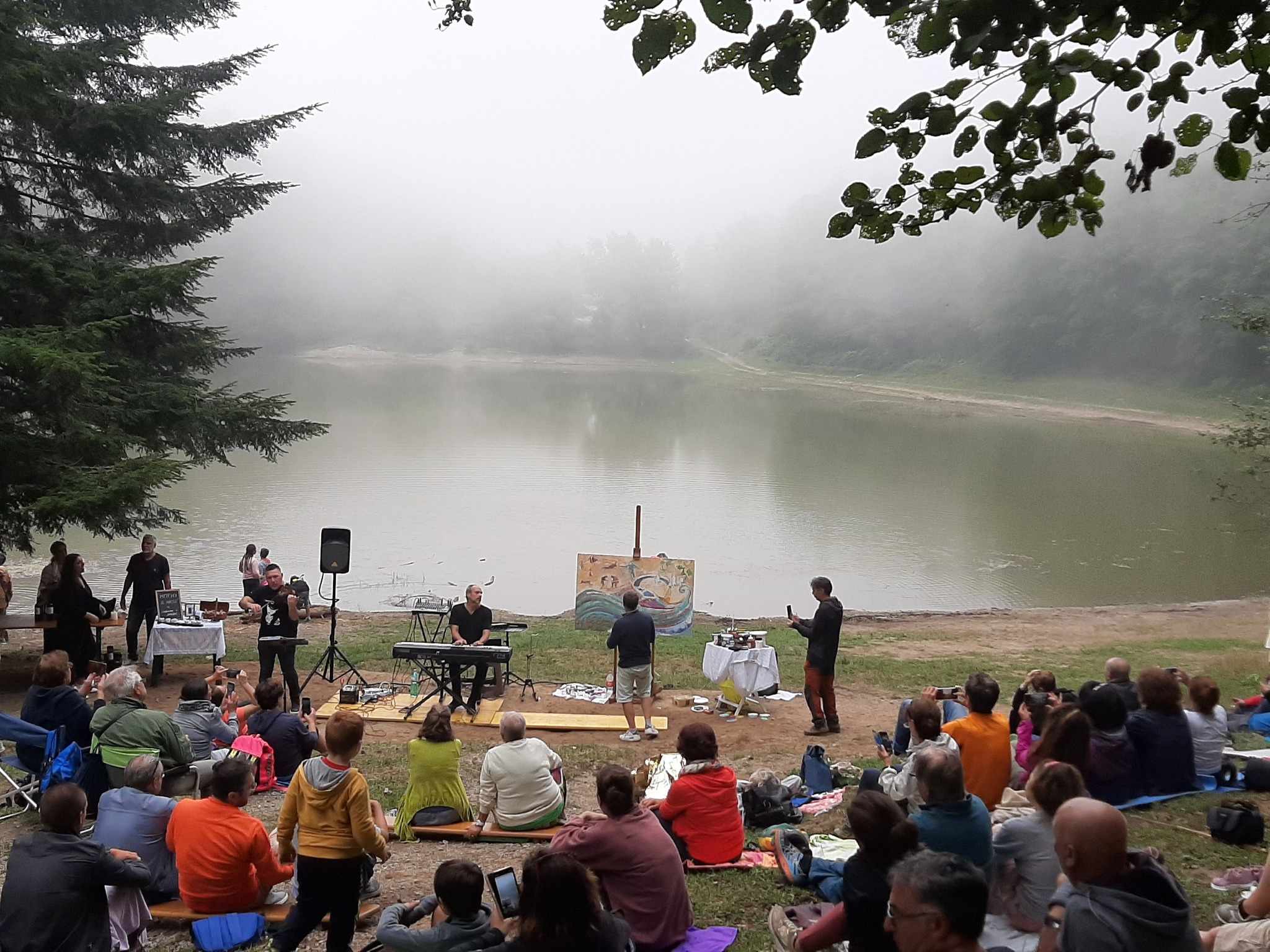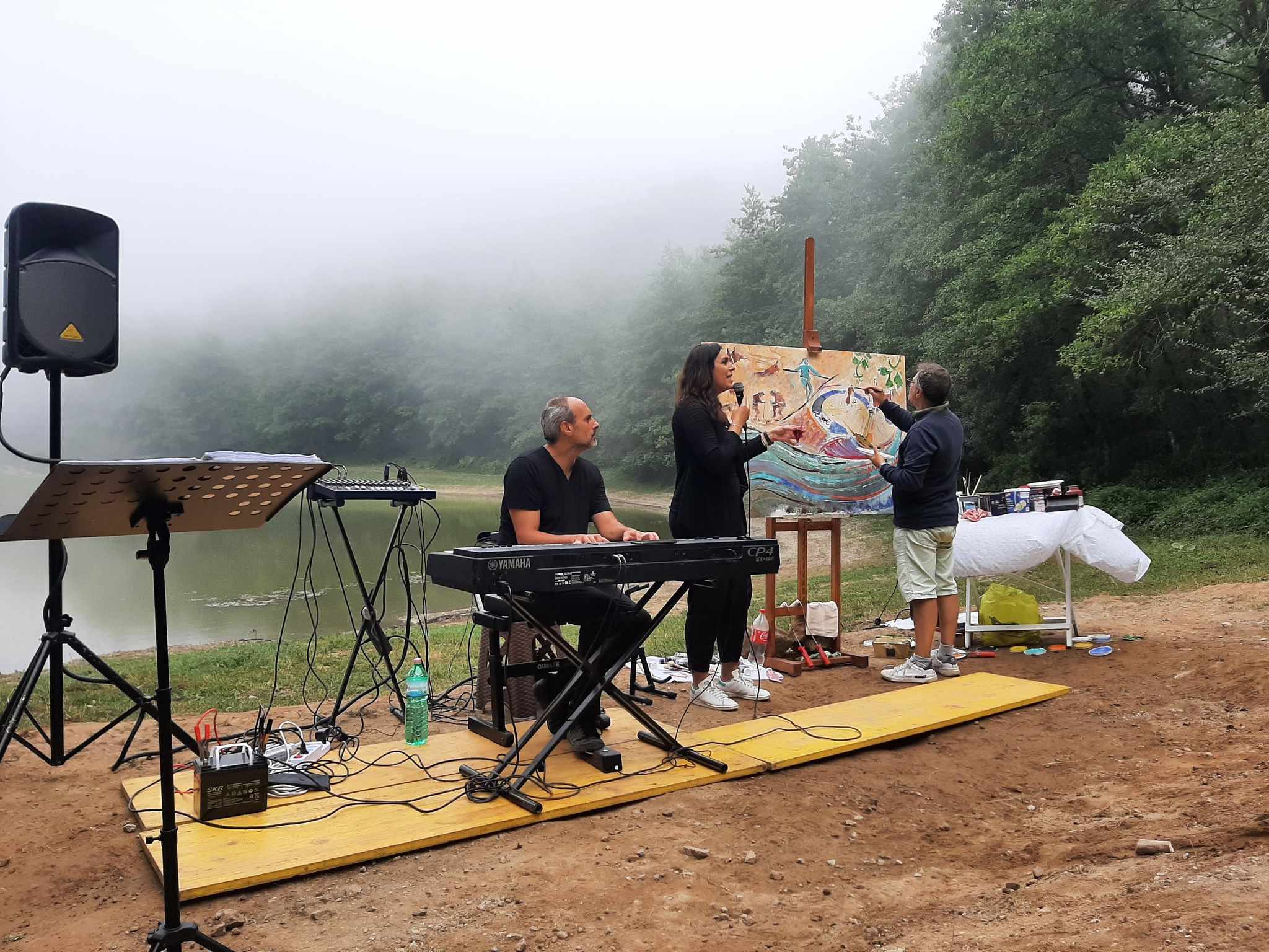 Il Concerto di Vino su Tela ad alta quota (il Lago La Penna si trova a 852 metri sul livello del mare) è stato un viaggio sensoriale nel mondo del vino, nella musica e nell’arte. Per dirla con Proust, un vero viaggio non è cercare nuove terre ma avere nuovi occhi. E, magari, un paio di scarpe da trekking!