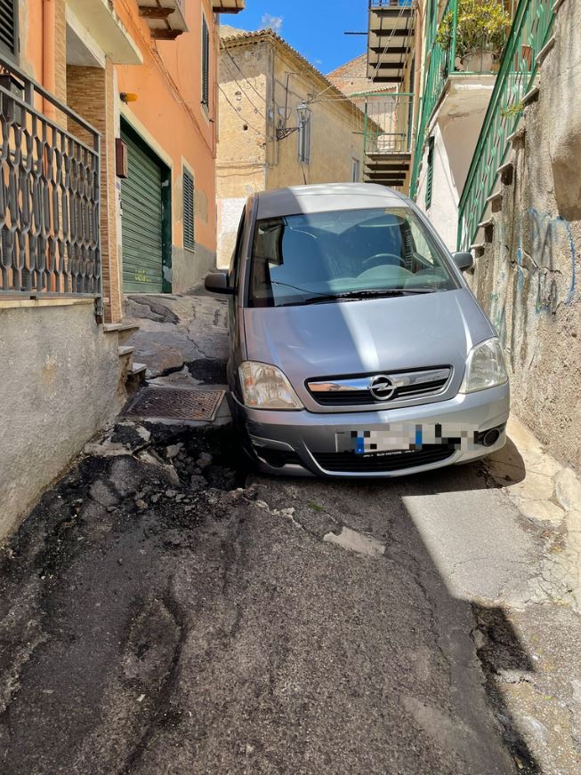 “A restare incastrata la ruota di una Opel Meriva di un cittadino del posto e il mezzo ha avuto diversi danni. La vettura è rimasta bloccata ed è stato necessario l’intervento dei vigili del fuoco”
