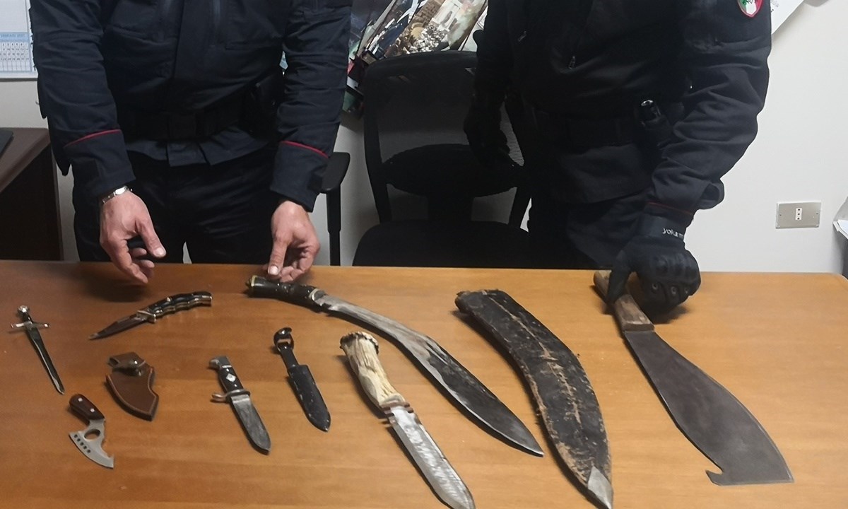 “Nella sua abitazione sarebbero stati trovati tre machete, di cui uno con una lama di quasi 70 centimetri di lunghezza, oltre che tre pugnali ed uno stiletto.