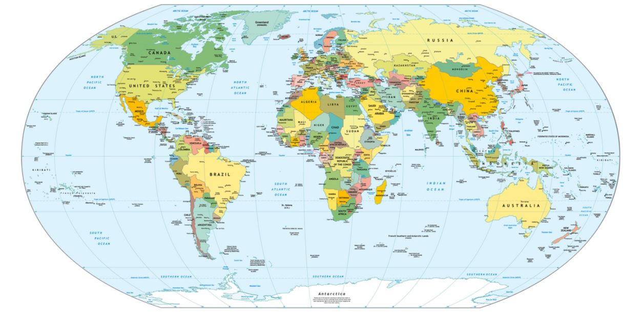 Cartine politiche: le mappe politiche mostrano i confini tra nazioni, stati e altre unità amministrative, oltre a indicare la posizione delle città principali e delle capitali. Sono essenziali per capire la divisione politica del mondo.