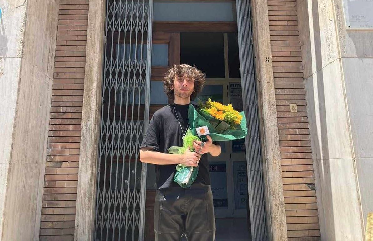 Davanti la commissione risulta essere pronto, preparato e sicuro di sé, tanto che arriva il risultato di 100/100 e si diploma.