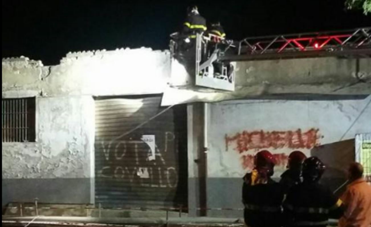 “È crollata l’insegna di una vecchia struttura diroccata, a poche centinaia di metri dal polo scolastico di via Popilia, trascinandosi dietro anche un pezzo di muro.
