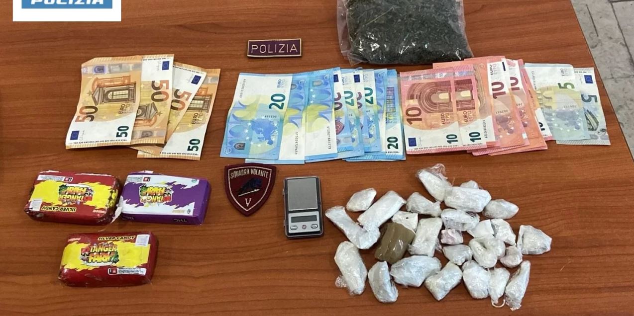 “Gli agenti della Squadra Volante di questa Questura in transito su una nota via del centro cittadino, notavano un soggetto appiedato che, alla vista della Volante, aumentava palesemente la marcia al fine di eludere il controllo. Il medesimo, raggiunto dagli operanti, veniva sottoposto a perquisizione personale che sortiva esito positivo, atteso il rinvenimento, all’interno delle tasche del giubbotto che aveva al seguito, di 3 panetti contenenti sostanza stupefacente del tipo hashish, 27 involucri, debitamente confezionati in involucri di cellophane, contenenti sostanza del tipo hashish, oltre ad un bilancino di precisione.”