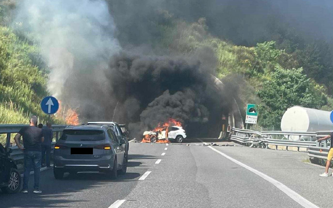 Cosenza, auto prende fuoco dopo un incidente in autostrada