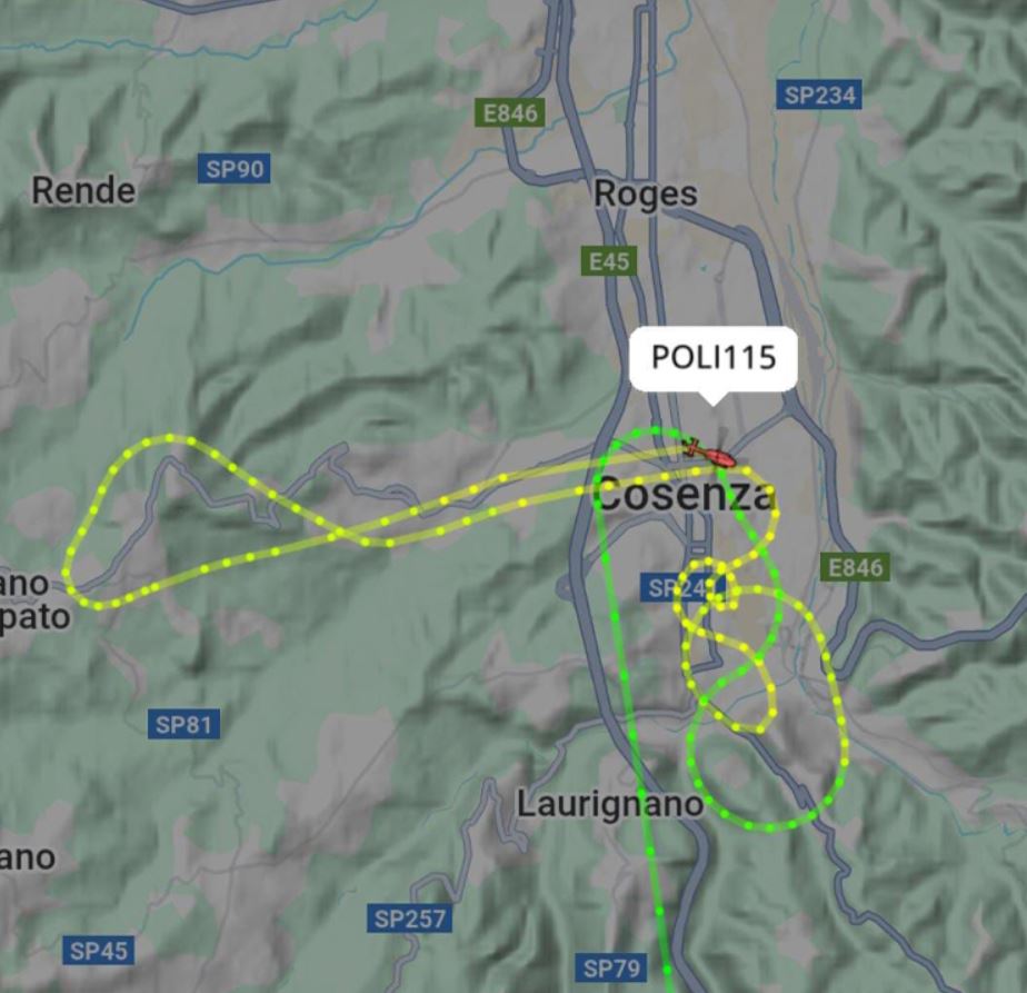 “È in corso da questa mattina all’alba un blitz delle forze dell’ordine sulla città di Cosenza e nei dintorni. I residenti dell’area urbana hanno distinto nitidamente l’elicottero della Polizia di Stato Poli115-A139 effettuare una serie di manovre sopra il capoluogo e le zone limitrofe. Attese a breve comunicazioni ufficiali”