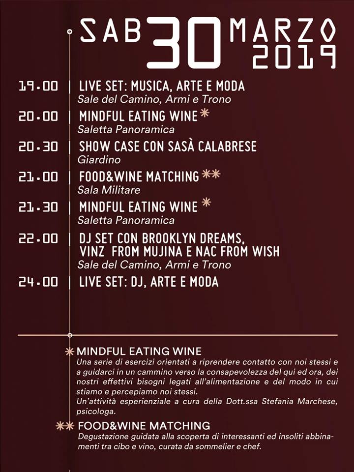 L’evento si protrarrà per due giorni, durante i quali si potrà anche assistere a mostre di arte e moda, show cooking, percorsi sensoriali, dj e live set, shooting fotografici. Interverranno esperti del settore vinicolo, produttori e sommelier qualificati, che accompagneranno gli ospiti nelle degustazioni guidate e negli incontri tematici.