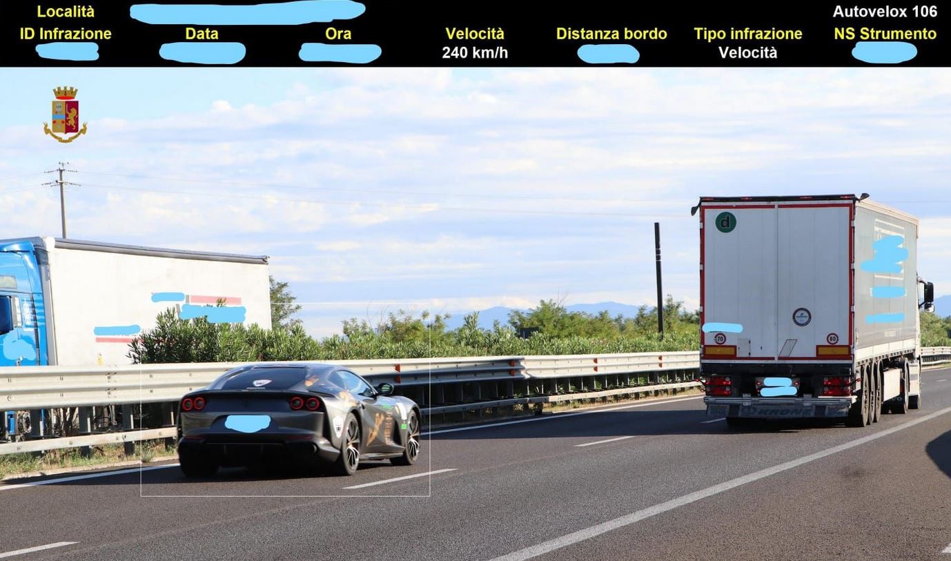 “Gli agenti sono riusciti ad immortalare 10 fotografie riguardanti altrettante autovetture fuori serie, i cui conducenti, incuranti dei limiti di velocità, sfrecciavano a velocità assurde in direzione sud. Per ognuno di loro, sia pure circolanti su auto sportive con targa straniera, multe salate con ritiro della patente.”