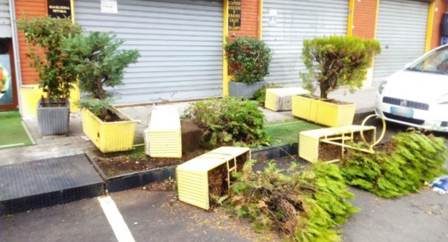 Presa a calci un’auto parcheggiata e rovesciati diversi vasi di piante davanti un negozio