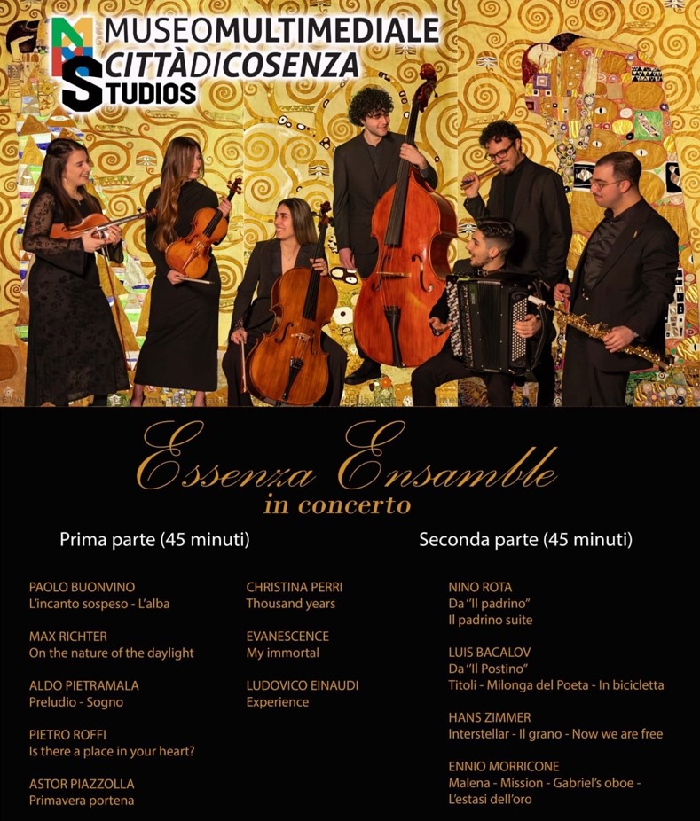 COSENZA – Una serata all’insegna delle emozioni, dove la musica incontra l’arte e l’esperienza culturale diventa immersiva e multisensoriale. È questo lo spirito di “Essenza Ensemble in concerto”, l’evento in programma questa sera, 9 aprile 2026 alle ore 20:30, nella suggestiva cornice del Museo Multimediale Città di Cosenza.