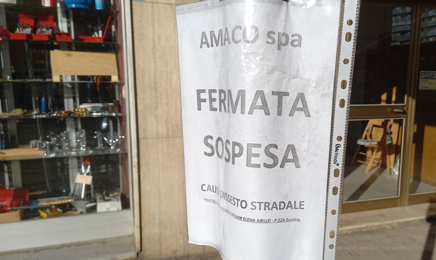 “Le pessime condizioni del manto stradale in Via Panebianco a Cosenza, hanno costretto l’Amaco a deviare il percorso della circolare verde, impiegata lungo una delle direttrici più importanti ed utilizzate dai viaggiatori. “
