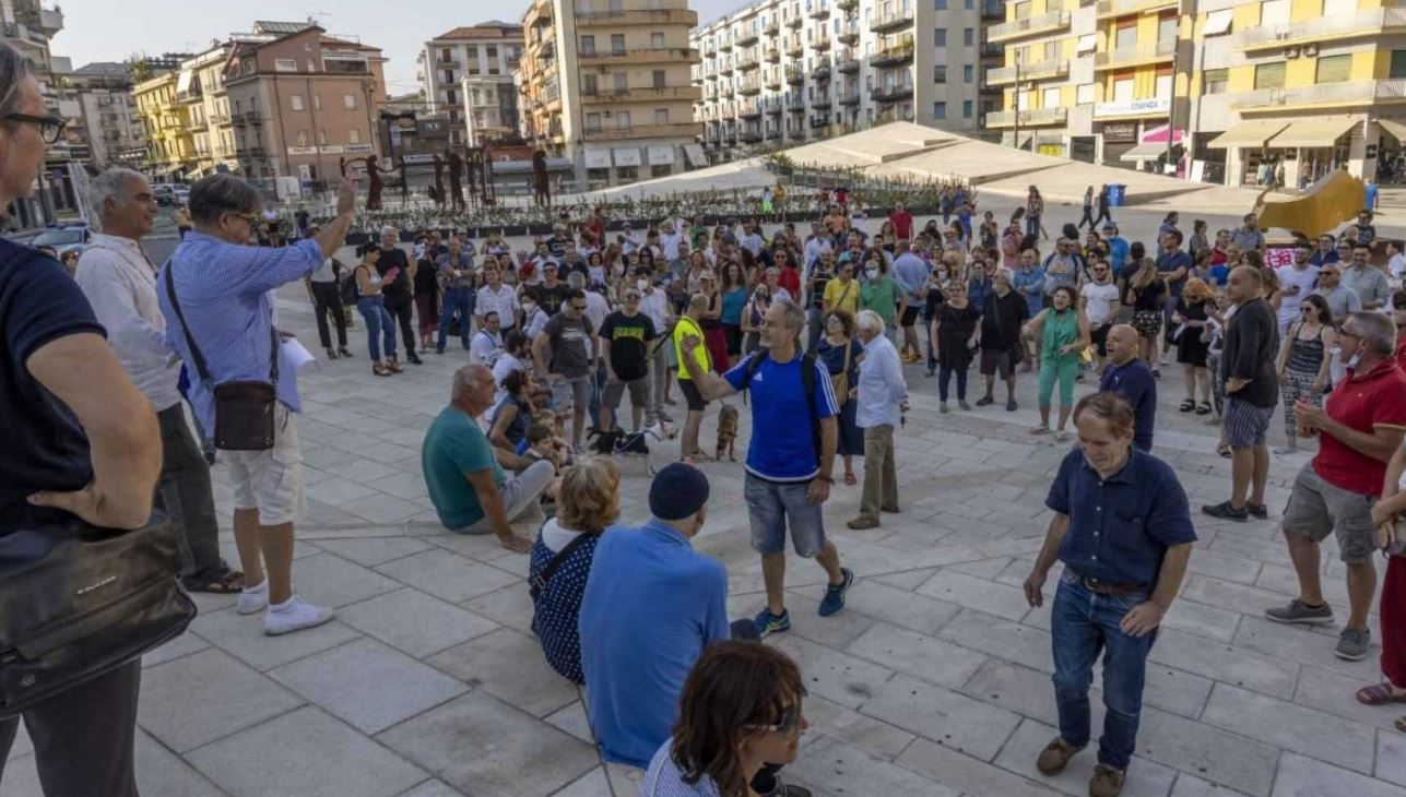 Manifestazione ieri pomeriggio in piazza Bilotti. Sei pazienti (sotto i 60 anni) entrati nel reparto di Malattie infettive ancora senza alcuna dose