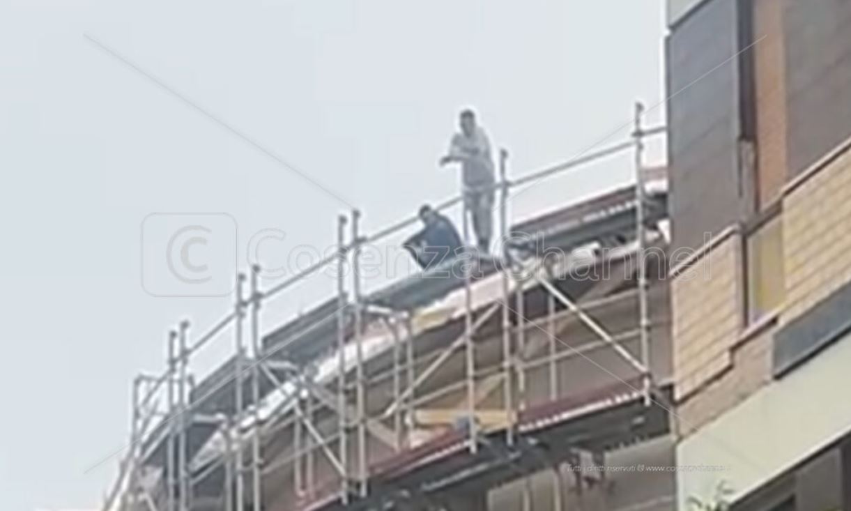“In via Sabotino a Cosenza, un uomo che minaccia di gettarsi da un palazzo. Tre operai, uno dei quali sul tetto dell’edificio, hanno chiesto il pagamento degli stipendi e hanno fatto cadere calcinacci sulle auto parcheggiate. Bloccate le vie Alimena e Sabatino per gestire l’emergenza.”