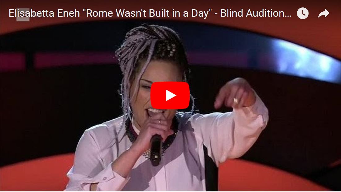 “La sua voce ha convinto e conquistato i coach Al Bano, J-Ax, Francesco Renga e Cristina Scabbia; tutti hanno voluto girarsi con le loro poltrone per ‘accaparrarsela’. Elisabetta Eneh, 31 anni da Cosenza, ha un passato difficile, un sorriso sincero, un’anima ricca di energia e allegria e una voce speciale. Metà cosentina, metà nigeriana, in città è conosciuta per la sua fantastica voce come Fil Mama.”
