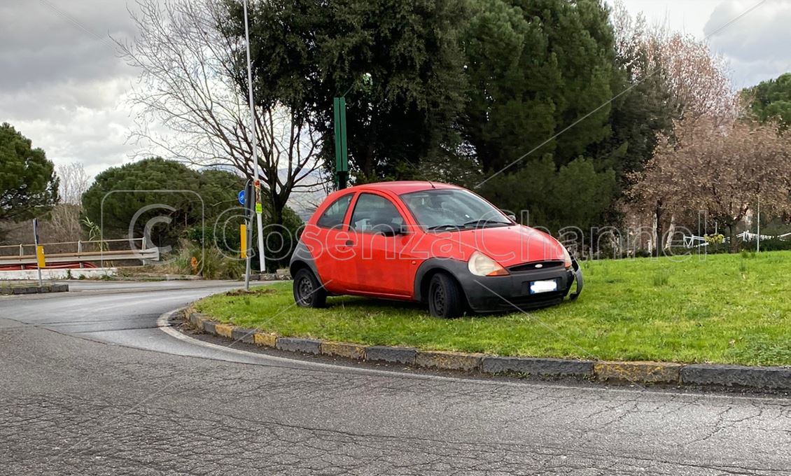 Una Ford Ka per cause in corso d’accertamento è sbandata nei pressi della rotonda di viale Cosmai, al confine tra Cosenza e Rende
