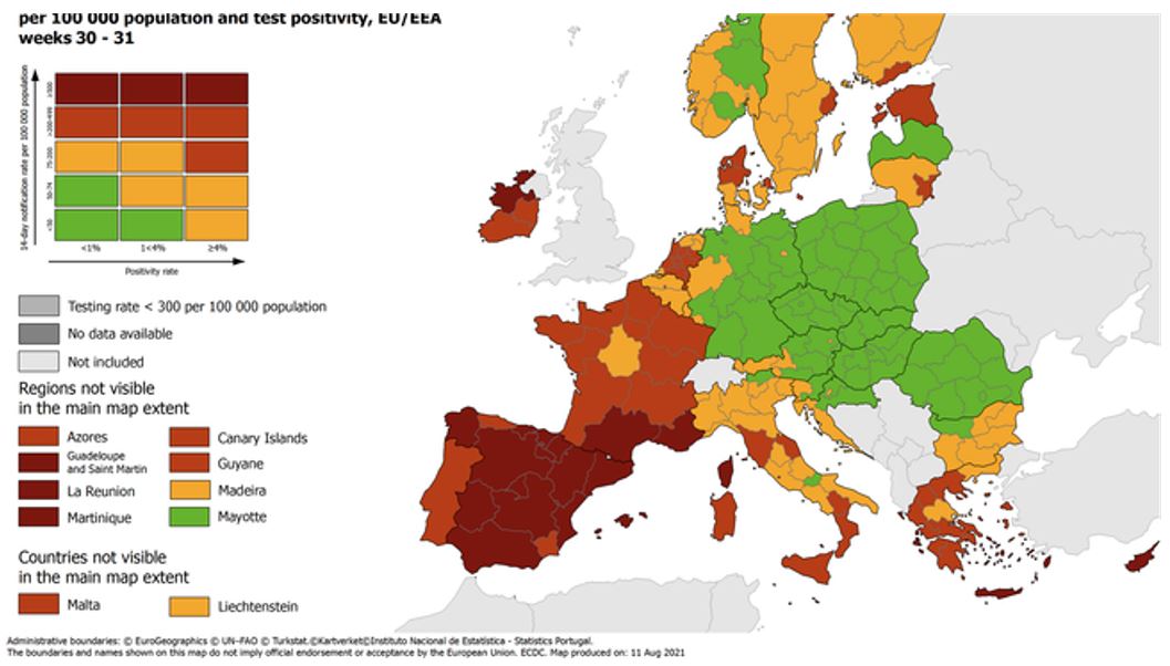 Salgono a cinque le regioni italiane rosse nelle mappe dell’Ecdc, il centro europeo per la prevenzione e il controllo delle malattie