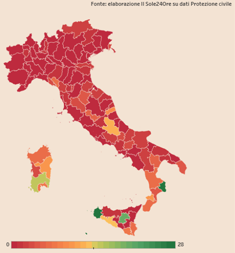 Coronavirus, la statistica di InfoData del Sole 24 Ore