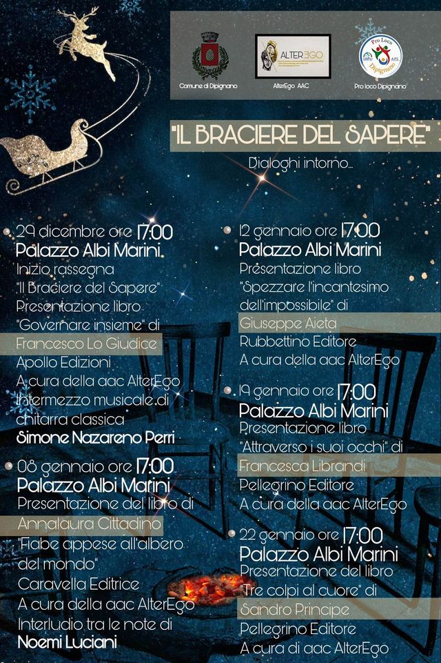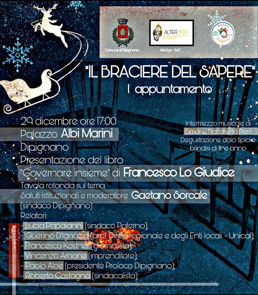 Il 29 cm in quel di Palazzo Albi Marini in Dipignano, partirà la rassegna denominata “Il braciere del sapere” dialoghi intorno… che prevede la presentazione di cinque volumi e la discussione, intorno a essi, con autori e relatori.