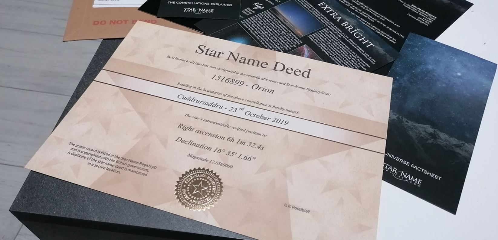 Da anni ormai è possibile, si sa, “regalare una stella”. Esatto. Si può scegliere una stella nell’universo e darle un nome, diventandone “virtualmente” proprietari. In molti infatti ricorrono a quest’idea per rendere felice il proprio partner, specie a San Valentino. Basta andare su www.star-name-registry.com/‎ (ce ne sono altri, ma questo è quello pare “ufficiale”, nonché infatti il più conveniente), scegliere un nome e pagare.
