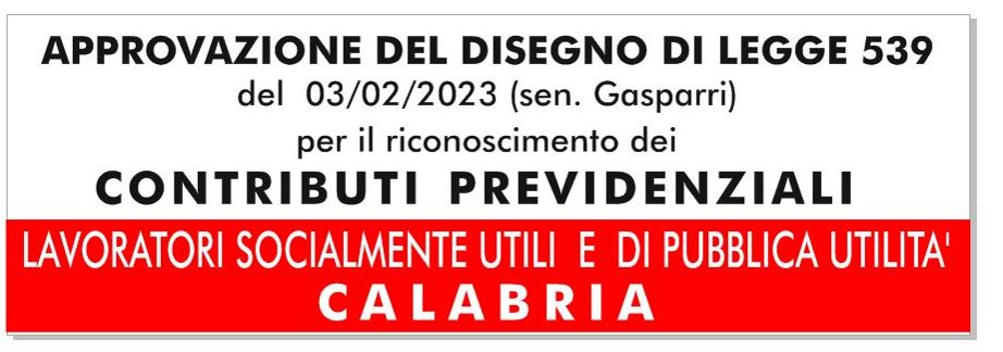 Una condizione che, oltre a ledere i diritti individuali, rischia di compromettere la prospettiva pensionistica di migliaia di lavoratori. La richiesta sarà quella di sollecitare il Governo, per l’approvazione definitiva del Disegno di Legge n. 539 presentato in data 03/02/2023, dal sen. Gasparri, (disposizioni in materia di riconoscimento del diritto alla pensione ai lavoratori socialmente utili e di pubblica utilità) da incardinare in commissione lavoro, per il riconoscimento dei contributi previdenziali.