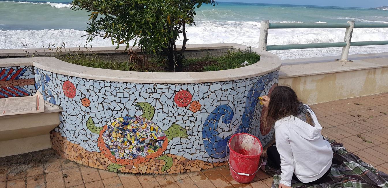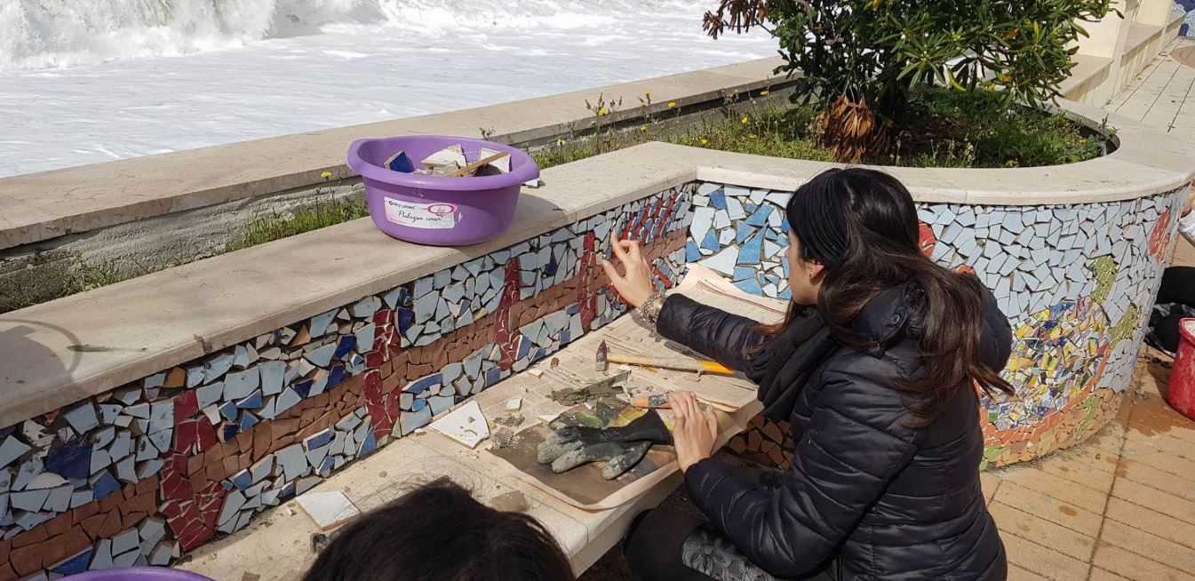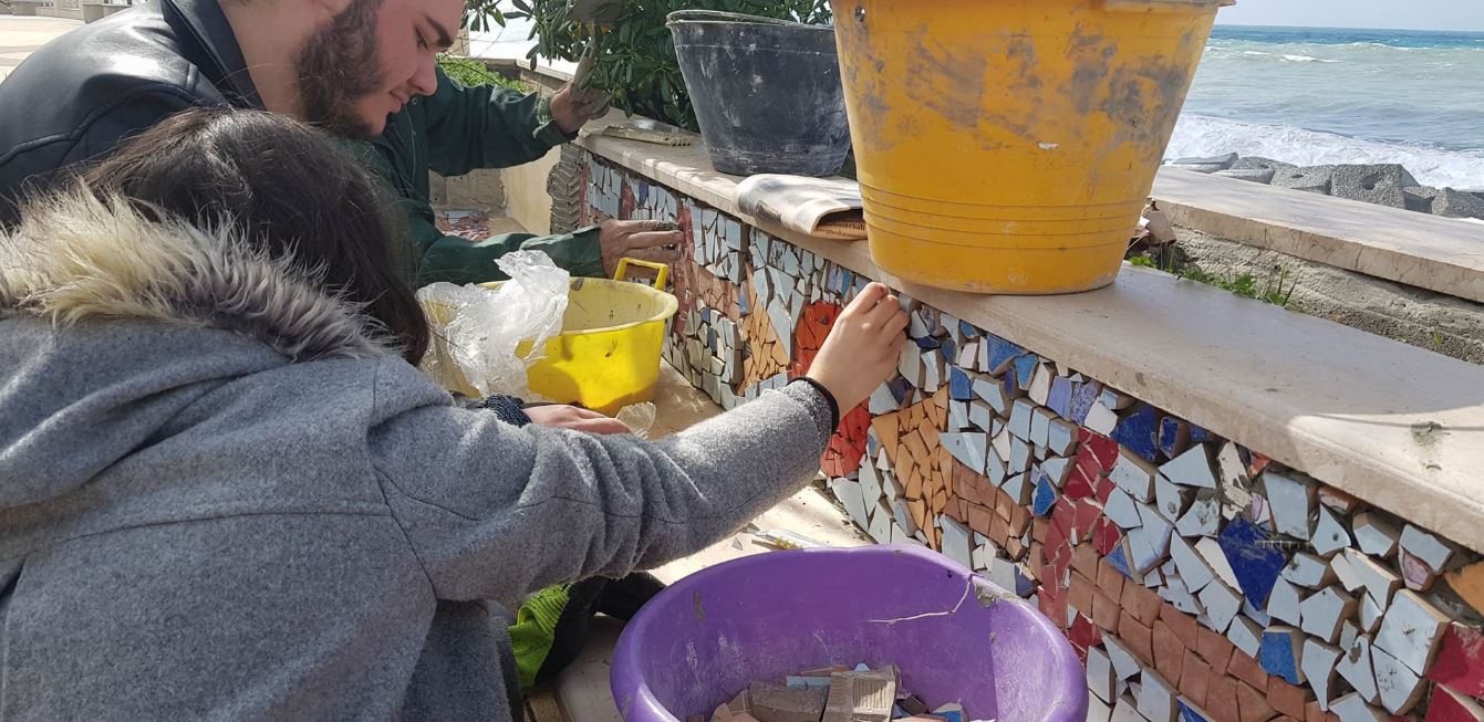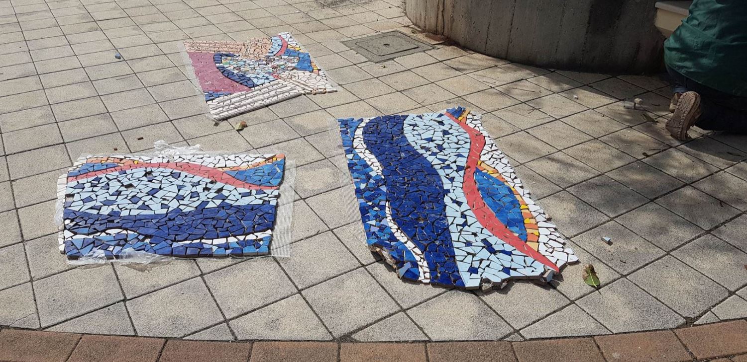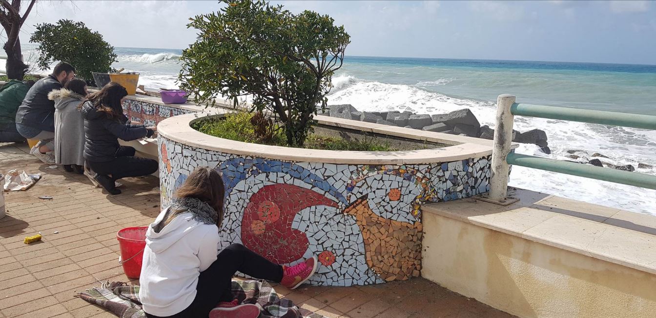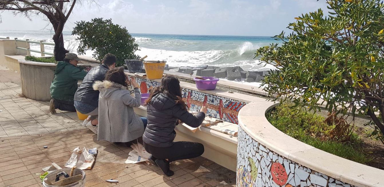 I ragazzi del Liceo artistico S. Lopiano di Cetraro stanno installando in questo momento dei mosaici sul lungomare di Cetraro.