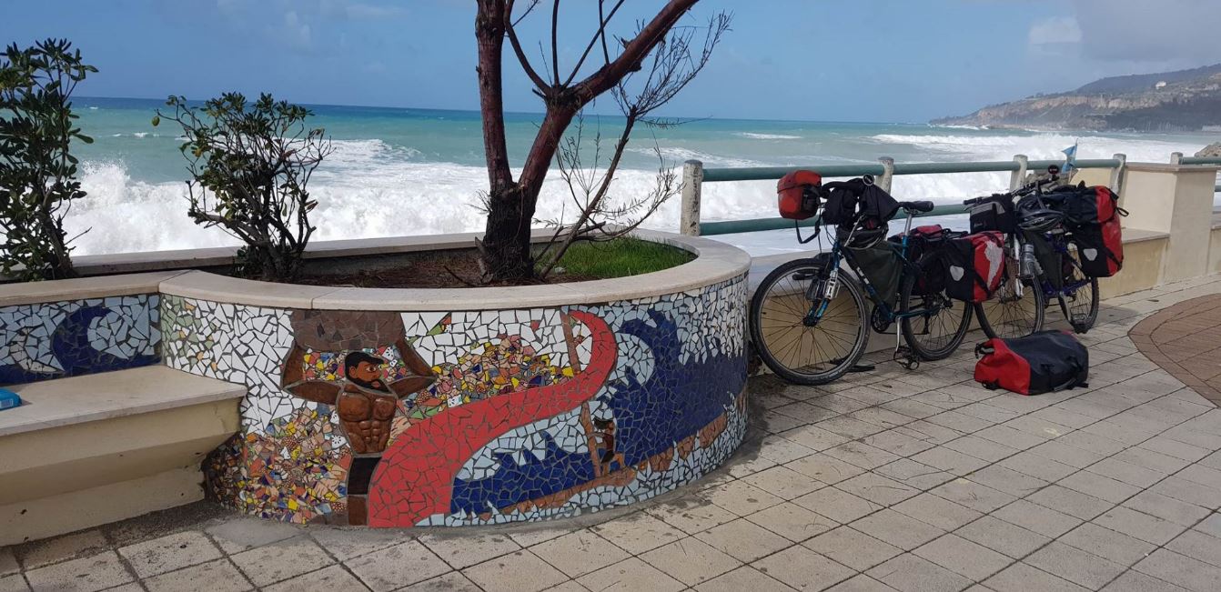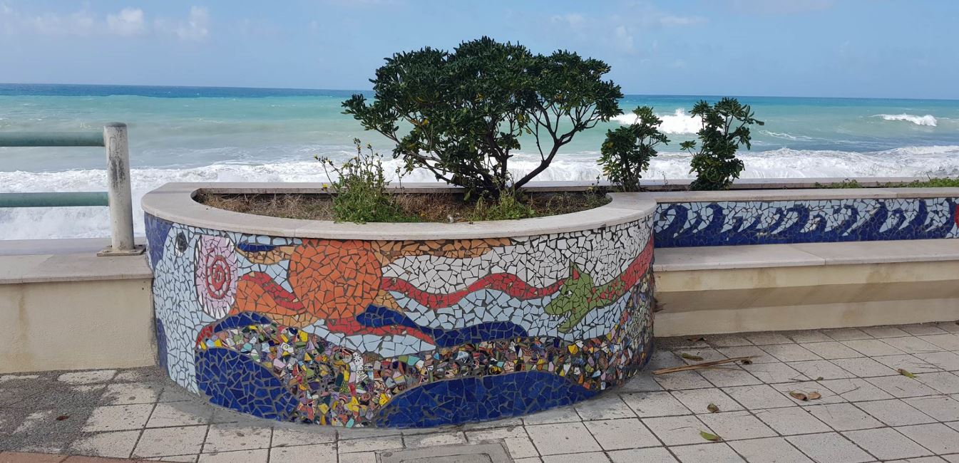 Il progetto prevede la realizzazione di 53 mosaici per tutto il lungomare. Si è partito da uno studio progettuale con tema ‘Odissea’ per selezionare vari disegni più idonei alla tematica.