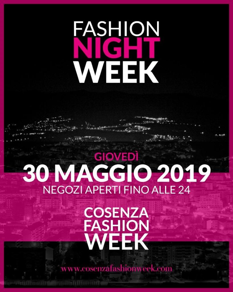 A conclusione della terza edizione della Cosenza Fashion Week è prevista per domani, giovedì 30 Maggio, un’appendice speciale con la Notte bianca della moda che presenterà un Centro città in fermento, poiché Corso Mazzini sarà piacevolmente invaso dalle creazioni di moda, da tantissima musica e vedrà i negozi aperti per uno shopping notturno estemporaneo.