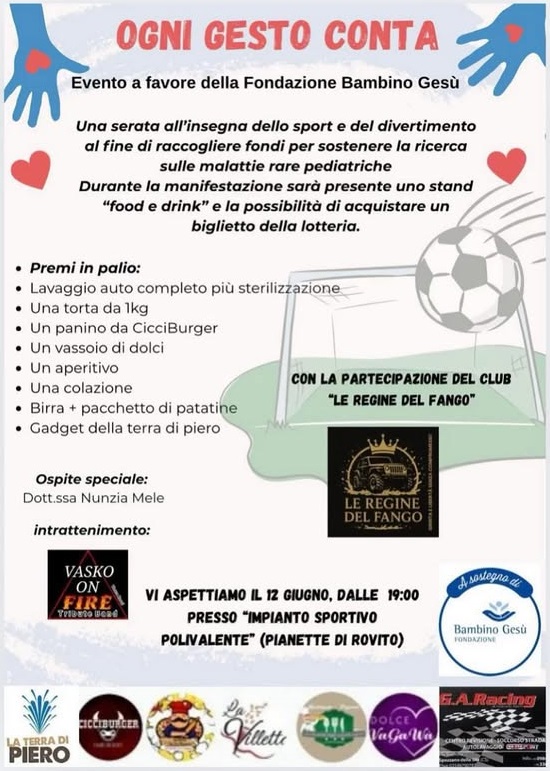 Domani a Pianette di Rovito evento sportivo benefico a favore del “Bambino GesĂș” di Roma