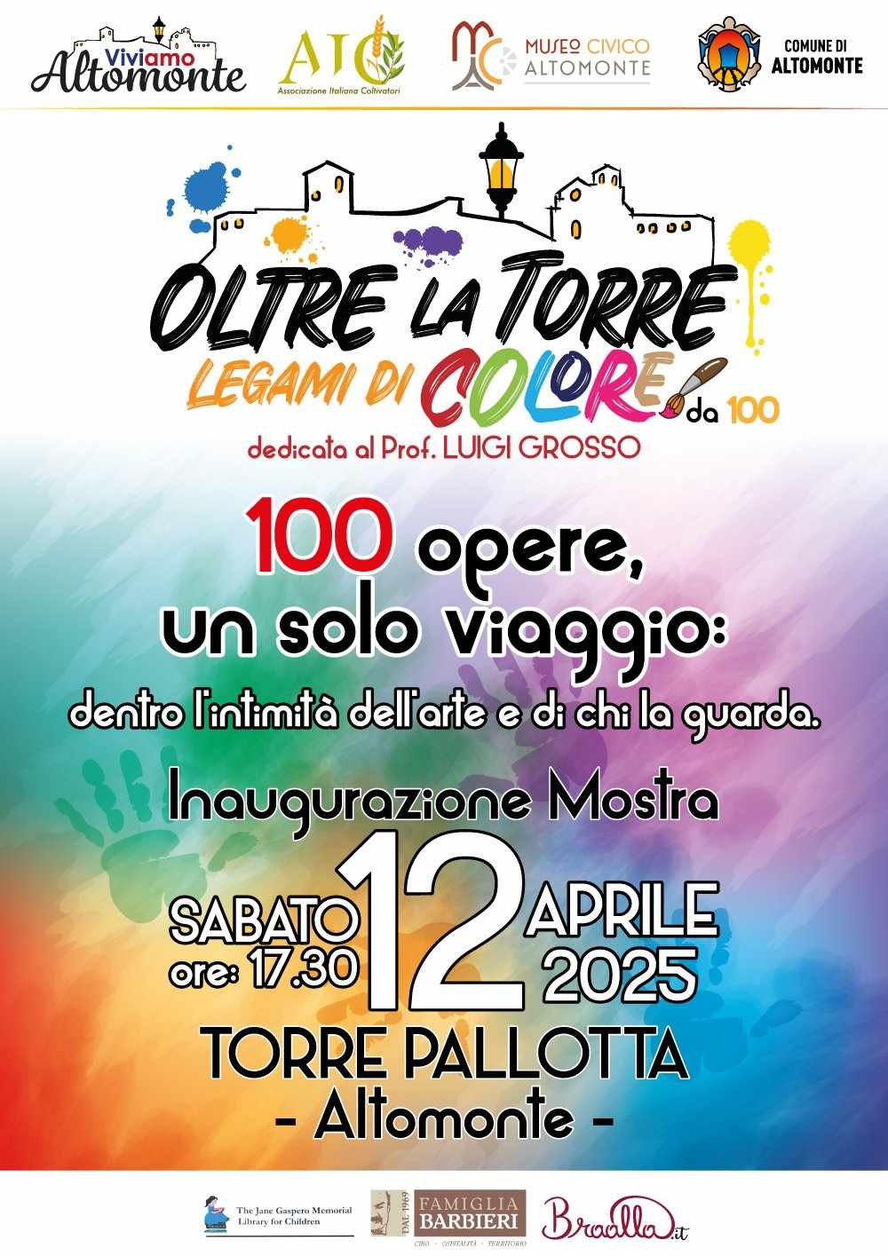Dedicata al prof. , uomo d’arte e amante del bello, che ha saputo fare della cultura un ponte tra passato e futuro, iniziando per primo un percorso di promozione dell’arte nel nostro borgo, questa esposizione vuole essere un omaggio al suo impegno e alla sua capacità di guardare oltre, di seminare bellezza e renderla accessibile a tutti.