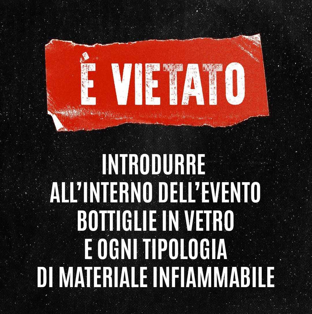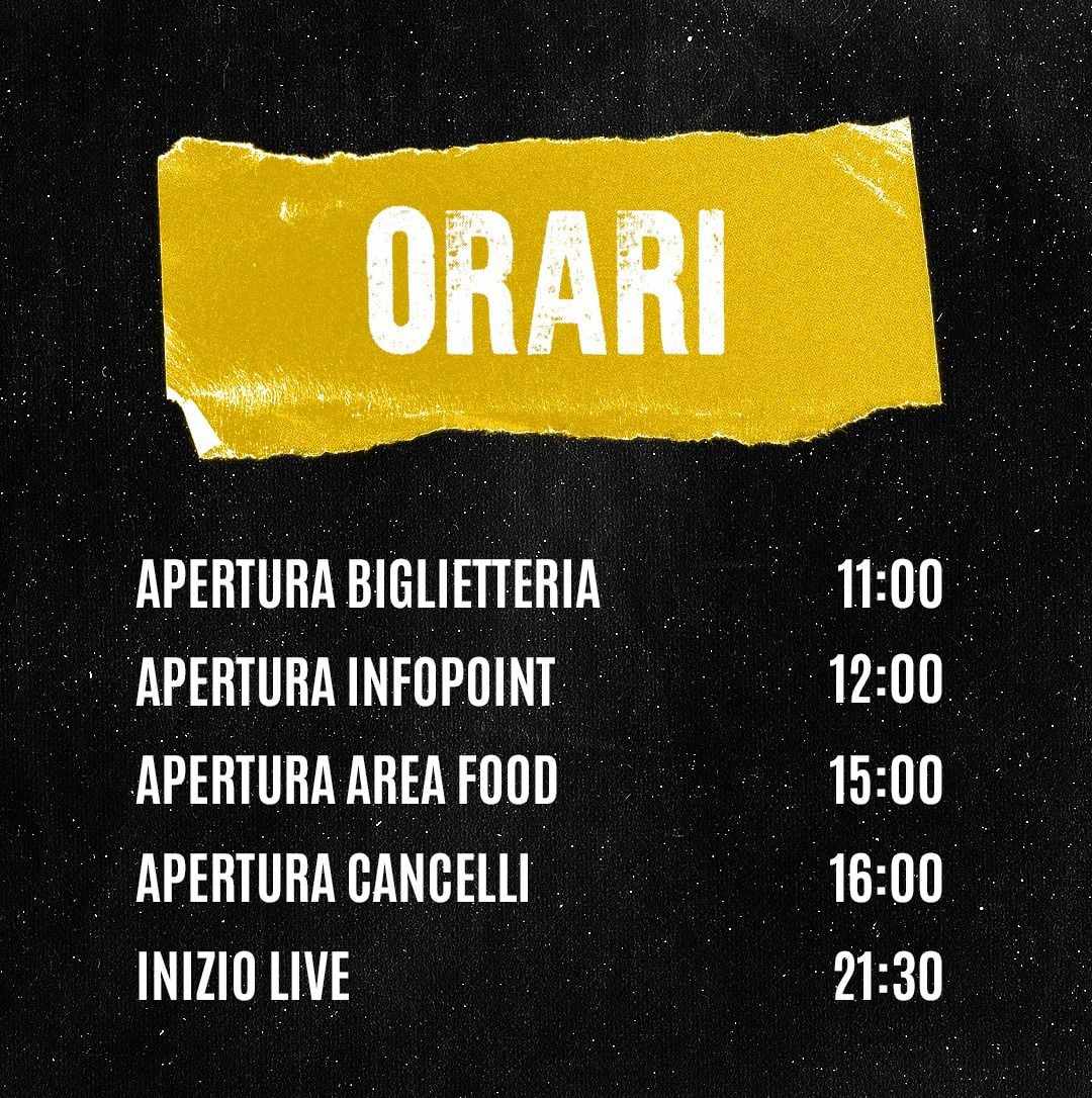 È consigliato l’utilizzo di cappello, telo prato e di arrivare con largo anticipo alla venue visto il grande flusso di utenza previsto al concerto. Apertura Cancelli prevista per le ore 16:00.