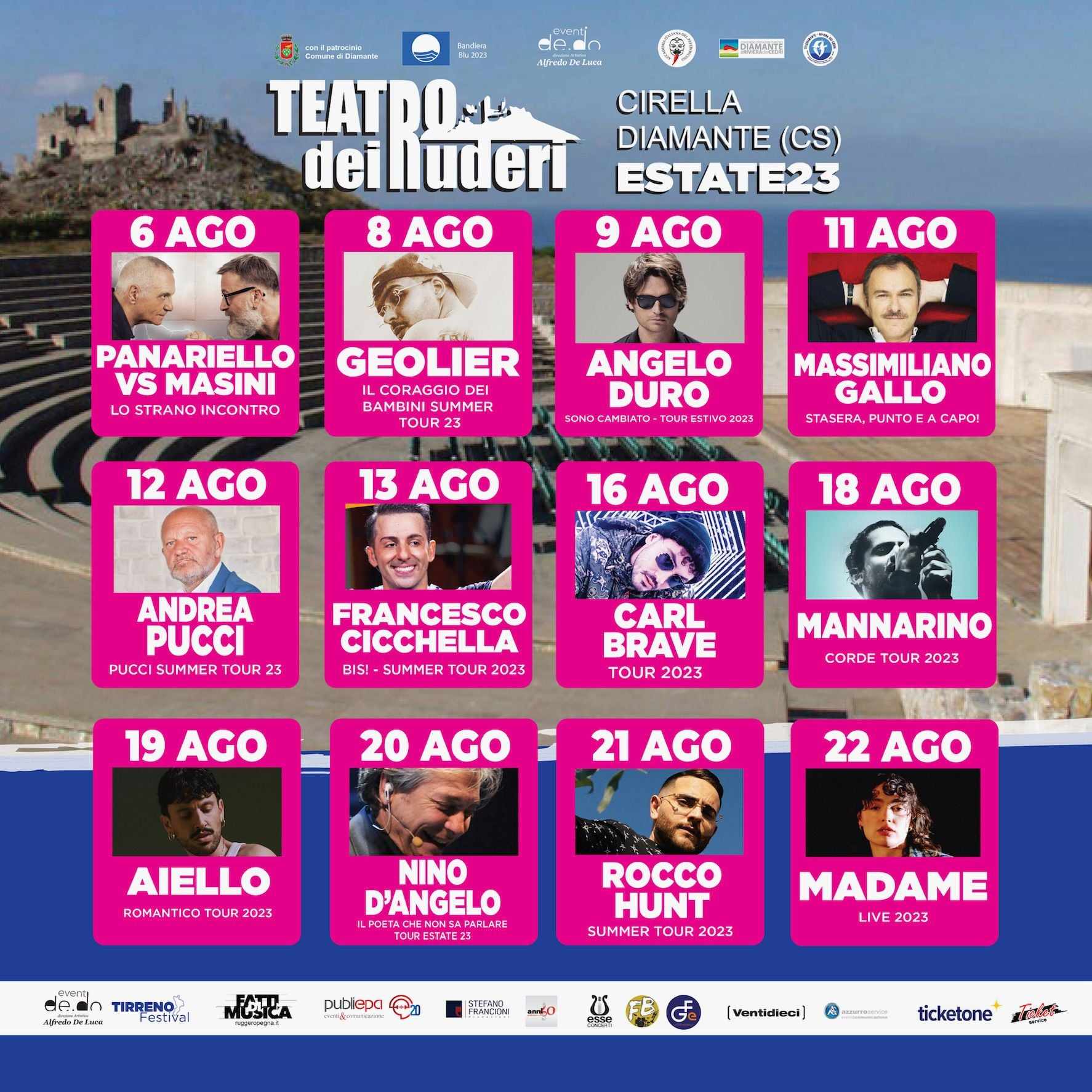 Il 6 Agosto 2023 infatti toccherà a Giorgio Panariello e Marco Masini inaugurare la stagione del Teatro dei Ruderi di Diamante (CS) con lo spettacolo “Lo strano incontro”.