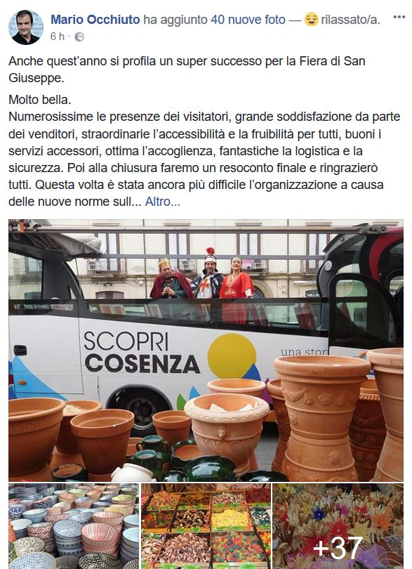 Il sindaco di Cosenza, Mario Occhiuto, lo rivela questa mattina sulla sua Pagina Facebook:
