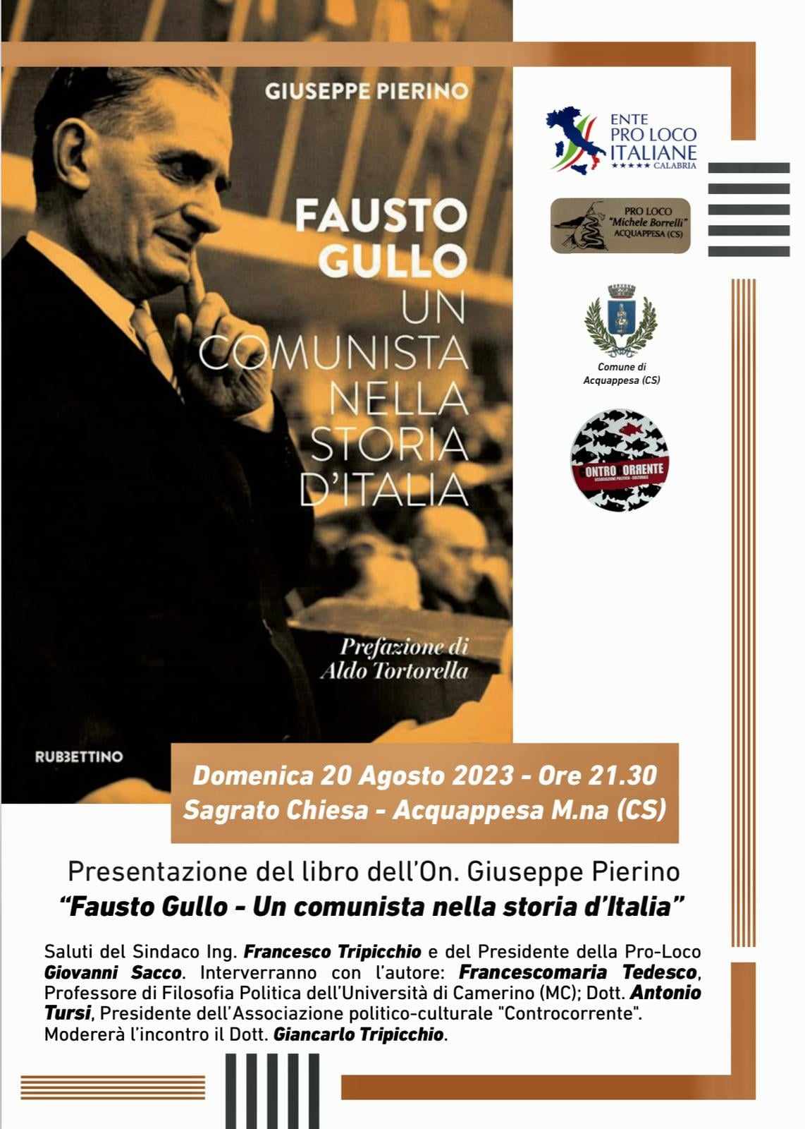 Sarà presentato il 20 agosto ad Acquappesa, alle ore 21:30, il libro dell’On. Giuseppe Pierino “Fausto Gullo – Un comunista nella storia d’Italia”