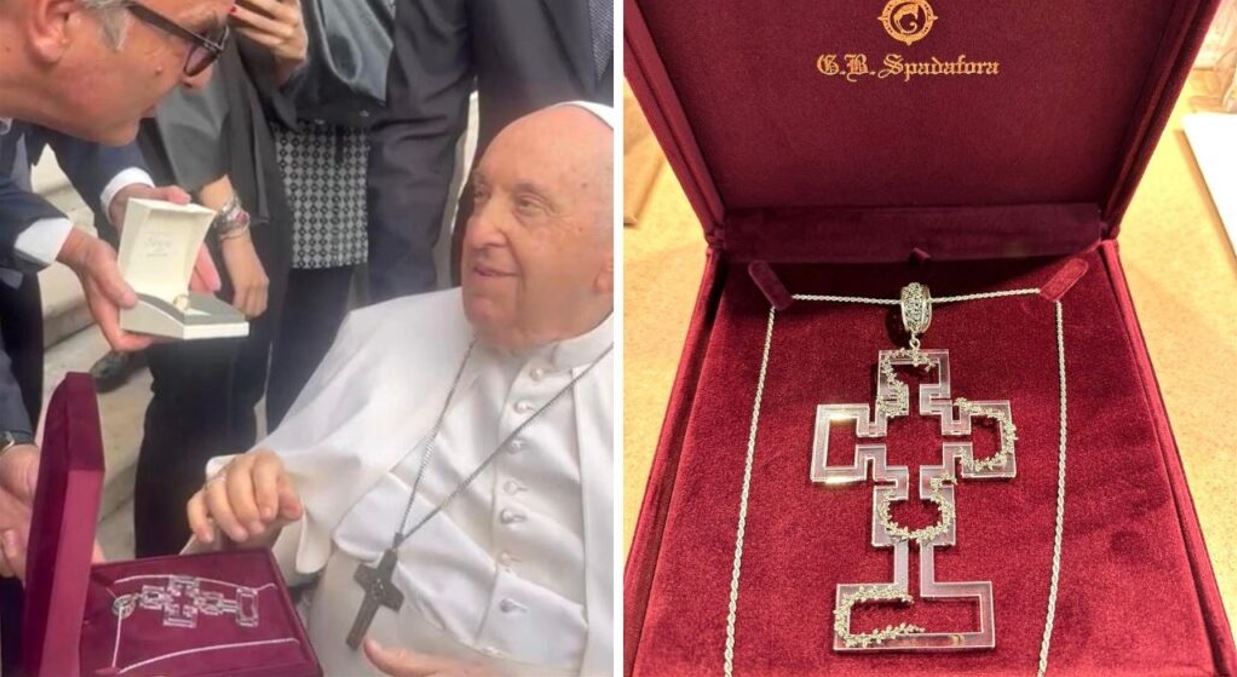 Nei giorni scorsi una croce interamente realizzata a mano per l’occorrenza è stata consegnata a Papa Francesco dall’orafo Giuseppe Spadafora
