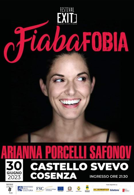 Appuntamento poi il 30 giugno, per la prima volta in Calabria Adriana Porcelli Safonov in “FiabaFobia”, uno spettacolo che indaga sulle fobie che accompagnano la nostra persona, scritto per ridere e riflettere su uno degli argomenti più attuali e meno discussi dei nostri tempi: la paura come timore sociale.