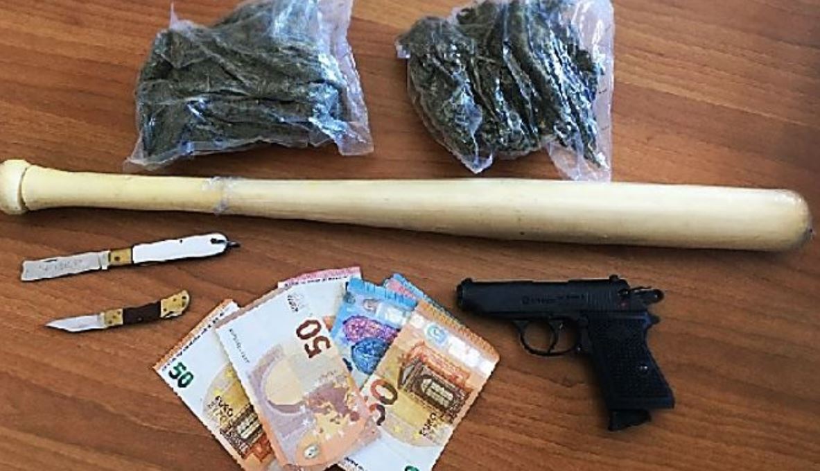 “La polizia stradale di Crotone ha proceduto al controllo di una autovettura Fiat Bravo, a bordo della quale viaggiavano due giovani G. B., 22anni, e C. C., 20 anni, entrambi della provincia di Cosenza, rinvenendo droga, coltelli ed una mazza da baseball.”