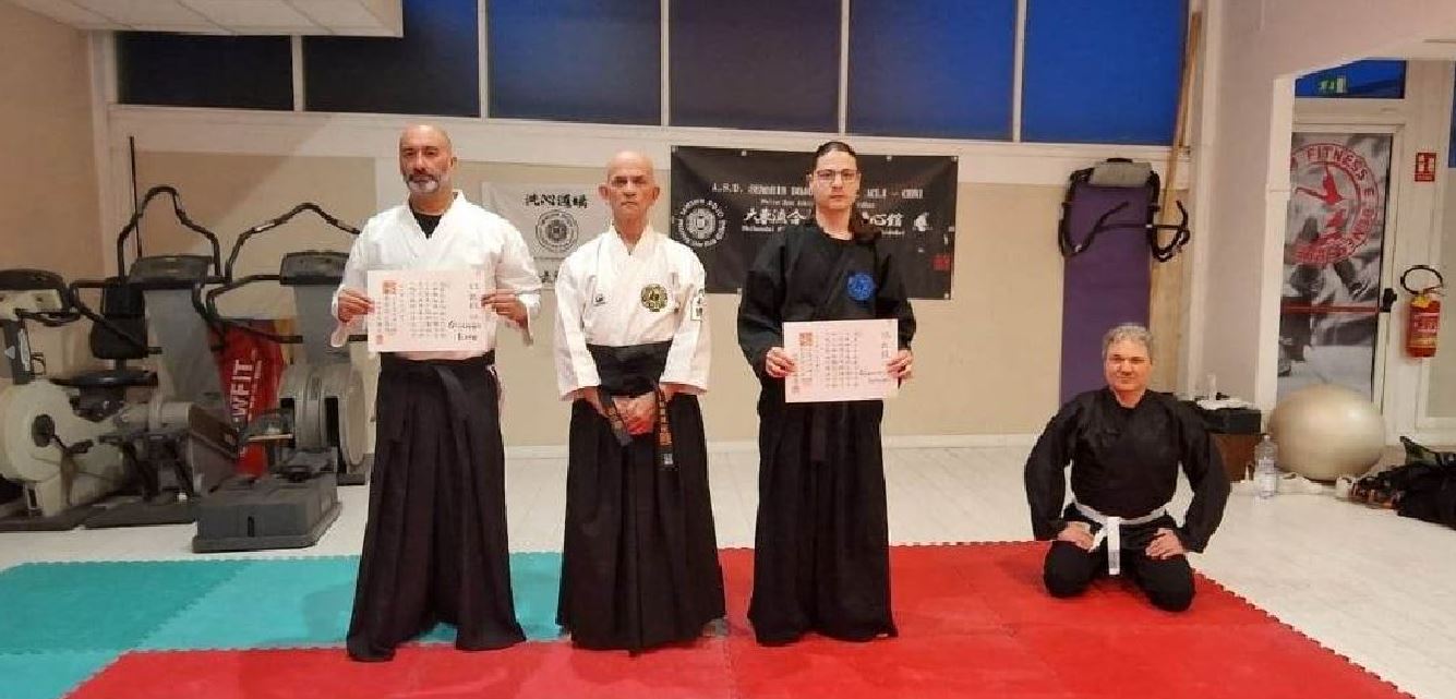 Un ringraziamento va al mio Maestro Kancho Michio Takase 38° successore del Daito Ryu Aikijujutsu Renshinkan che ha permesso questo corso e che nei primi di Giugno mi onorerò di andare a trovarlo in Giappone per proseguire i miei programmi di studio di questa disciplina marziale.”