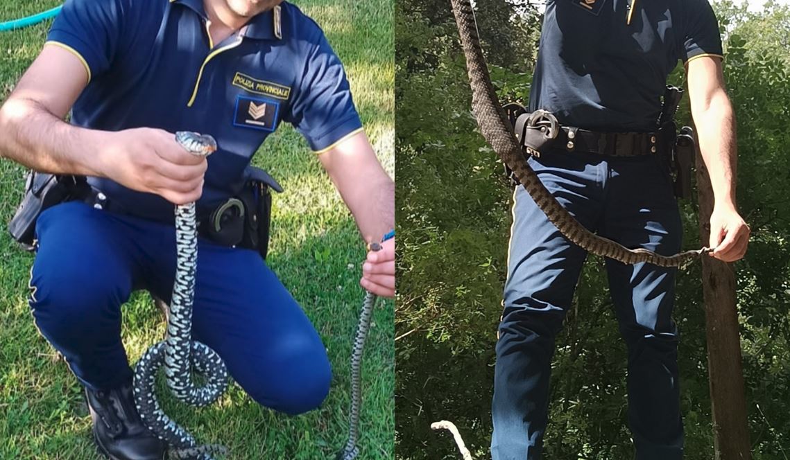 La Polizia Provinciale salva due bisce dal collare barrate a San Giovanni in Fiore. Continua la meritoria opera di salvataggio di serpenti sulla Sila