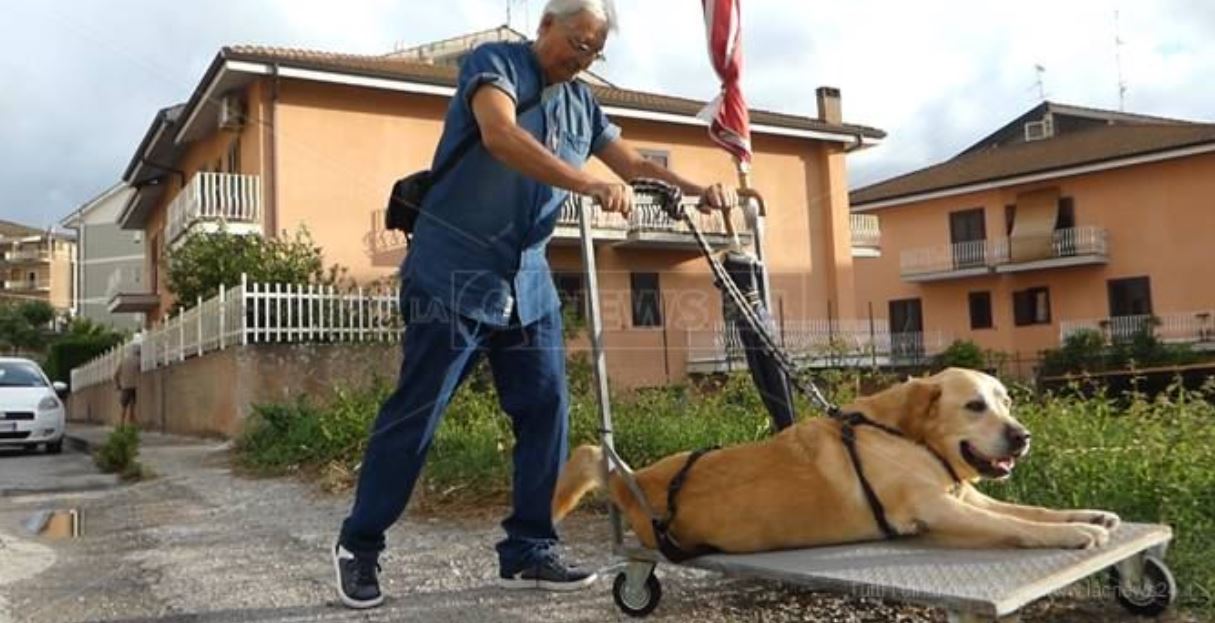 “Dylan, il labrador di Tonino Vitale la cui storia ha commosso l’Italia intera non c’è più. Si è spento nel pomeriggio a Vibo Valentia nella sua casa accanto al suo amato padrone. Dylan, 13 anni, era malato da tempo ma il suo padrone lo portava ogni giorno, per più volte al giorno, a spasso su un carrello di fortuna. La sua storia ha fatto il giro del web e commosso l’Italia intera”