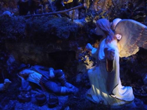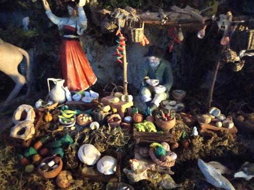 Ma non finisce qui, perché è un presepe originale e impreziosito nel tempo, troviamo diverse scene bibliche e addirittura il girone dell’inferno dantesco, la scena del fruttivendolo, la bellissima natività, i centurioni romani e gli angeli che sembrano reali, il tutto capeggiato dal nostro monte Cucuzzo in un gioco di proporzioni che sembra catapultarti all’interno, sul davanti troviamo invece due statue meravigliose, le più grandi del presepe, raffigurano un pastore ebreo e un pastore turco con abiti tipici, in procinto di recarsi verso la nascita di Gesù.